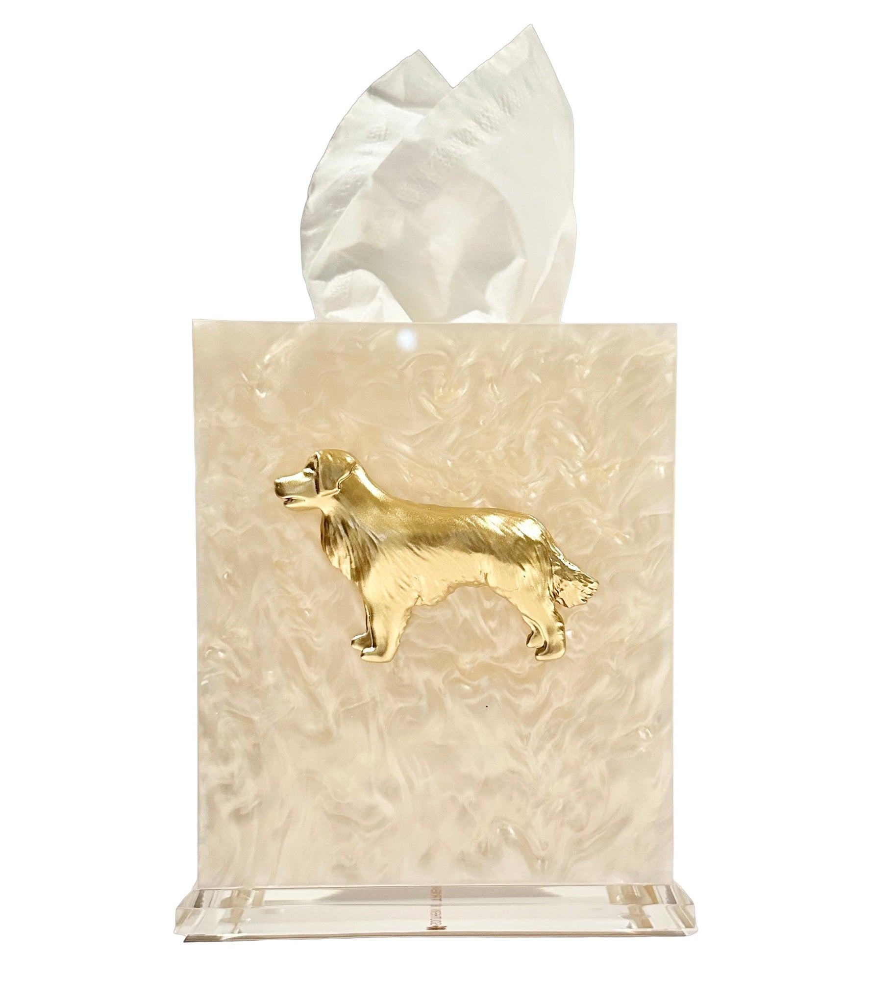 For the golden retriever lover, our tissue box brings a playful yet polished accent piece to you home. Place it in your powder room, on your night side table, or gift it to your friend that has a golden.