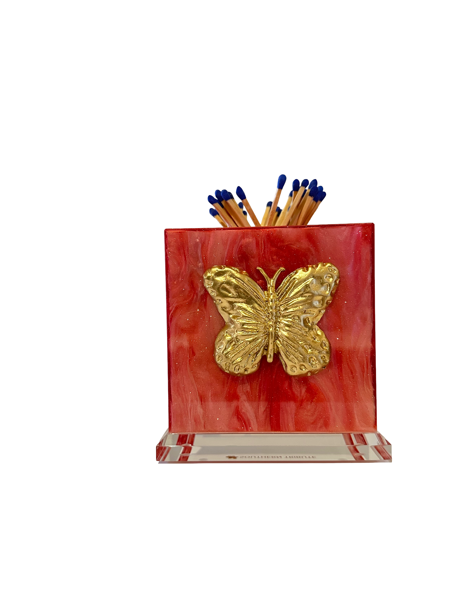 Add a touch of charm to your decor with our exquisite fine acrylic match striker. This stunning lucite-based acrylic match striker is not just sparkly but also durable and weighty, making it a must-have addition to your fine tabletop and tabletop decor. Our favorite collection, this match striker comes with 3-inch blue tipped matches, ready to light up your space in style. Choose from seven elegant colors and over 50 gold hand sculpted icons, including tortoise, lapis blue, pearl, gray, onyx, emerald, and raspberry, to perfectly complement your existing decor. With dimensions of 4 x 4 x 4.5, this match striker is both practical and stylish, making it a perfect gift for your loved ones or a treat for yourself. Order yours now and add a touch of sophistication to your home decor.