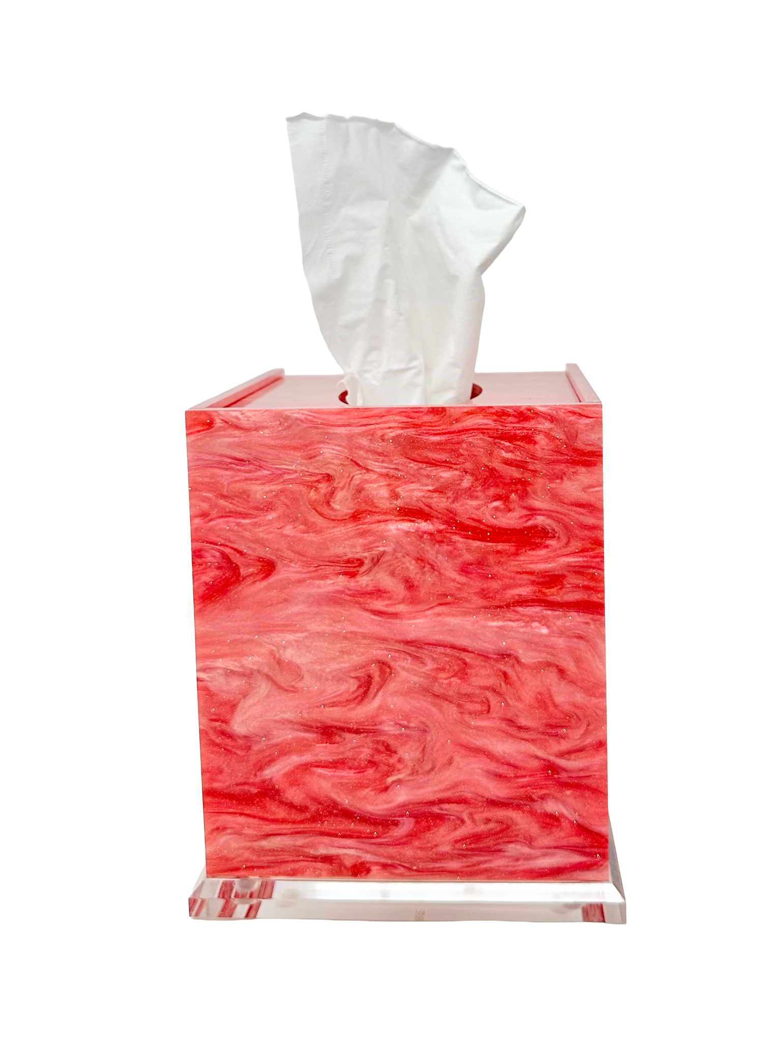 The Southern Tribute Acrylic Tissue Box Covers features a solid clear acrylic base with a 3/4 inch width, providing stability and durability. Its sleek design is enhanced by sevem stylish colorway options, allowing you to choose the perfect match for your interior: the timeless tortoise, the elegant pearl, the vibrant lapis blue, bold raspberry, stunning onyx, rich emerald, and soothing gray.