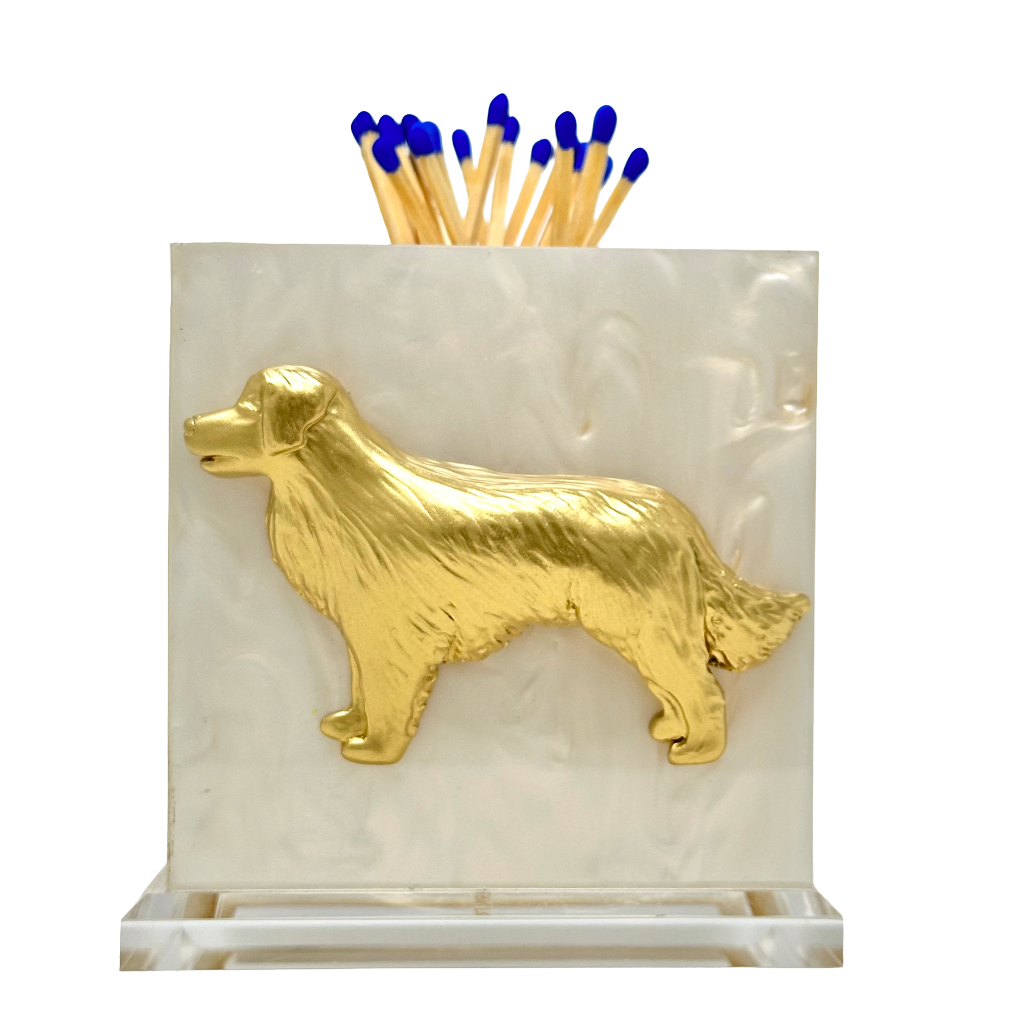 For the golden retriever lover, our refined match strike merges form and function. A graceful silhouette adorns each strike—a tribute to your faithful dog. Light your candles with understated elegance.