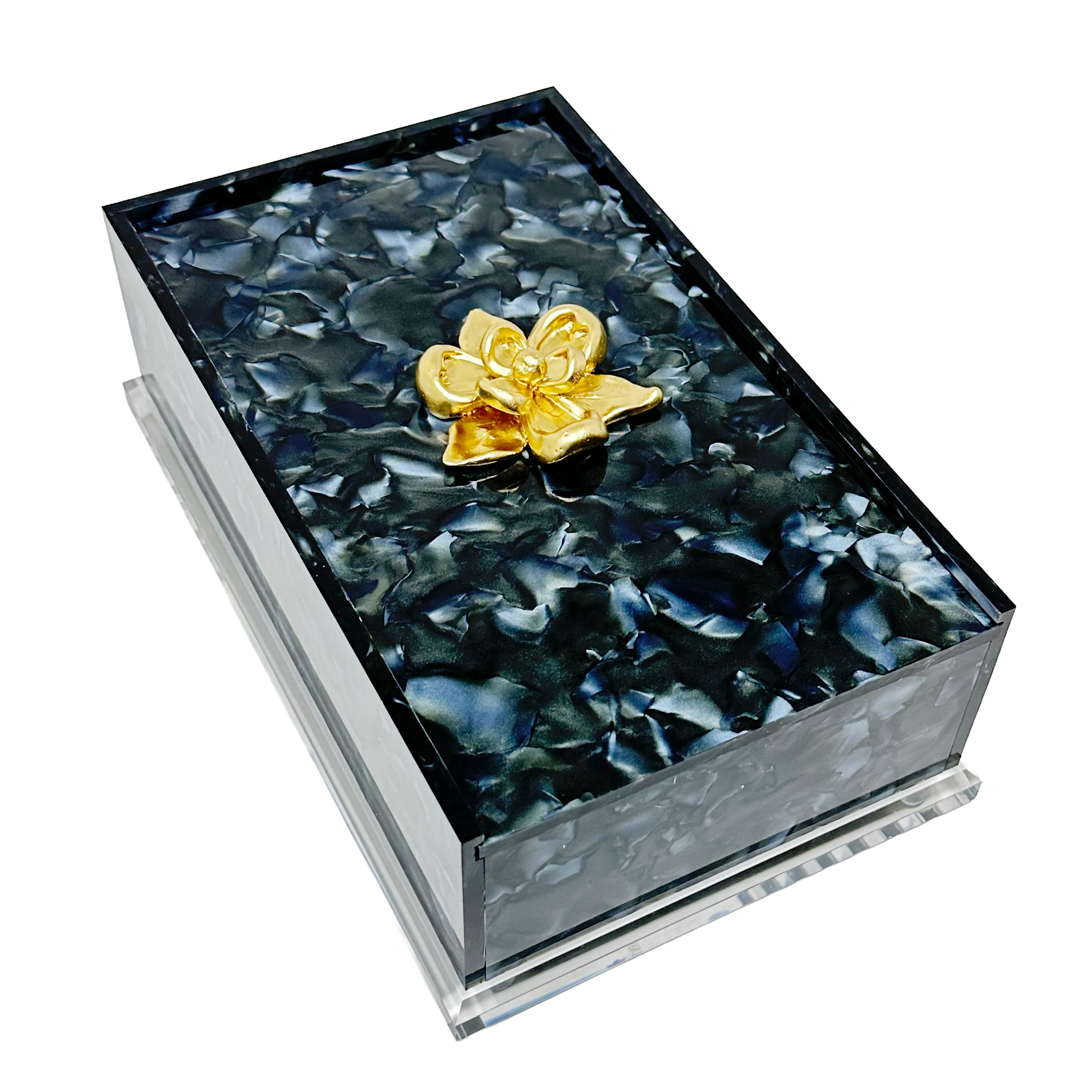 Bring timeless Southern elegance to your home with our Magnolia Guest Towel Box. Featuring a beautifully hand-sculpted magnolia icon in gold, this stunning acrylic piece captures the grace and charm of one of the South's most beloved blooms.