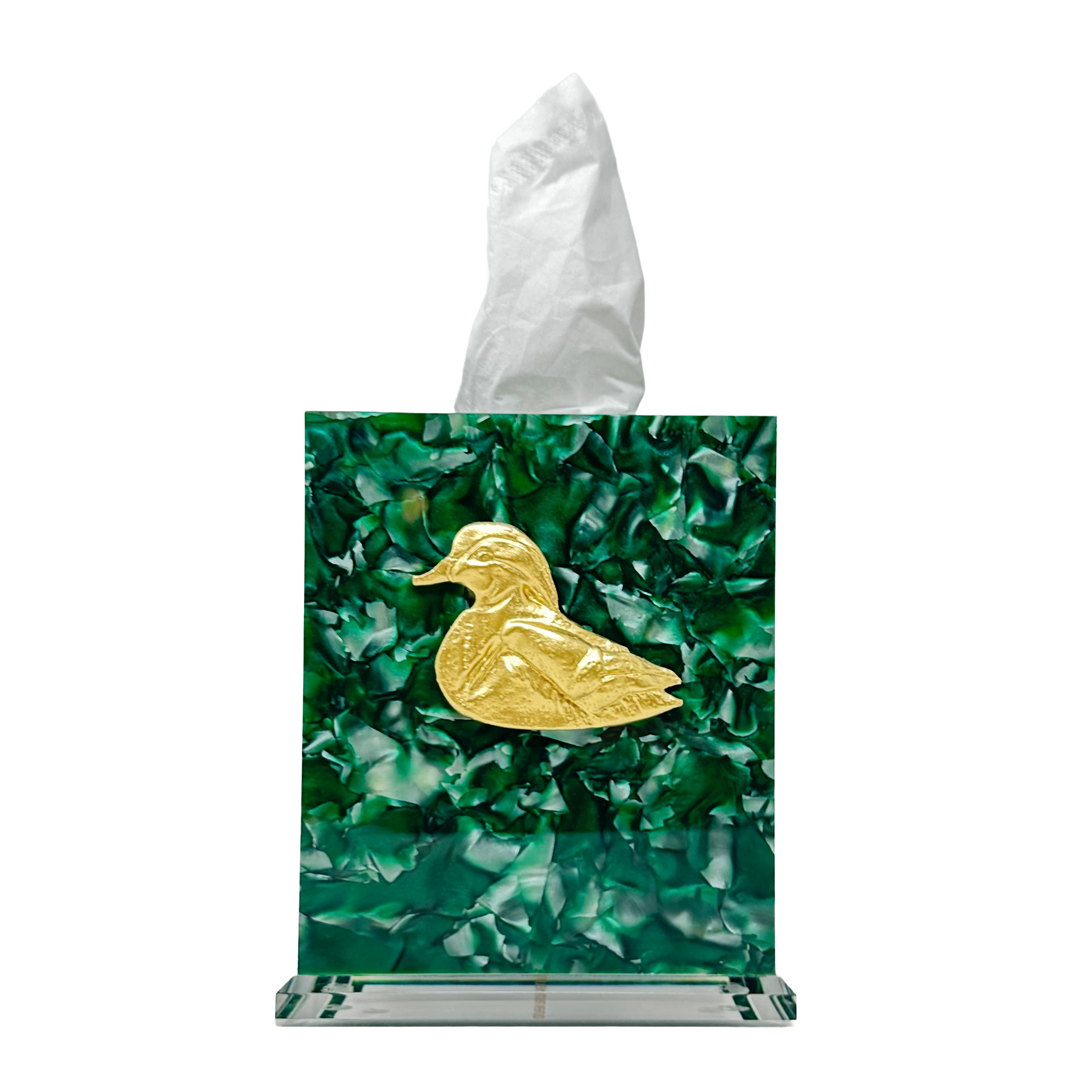 This charming Wood Duck Tissue Box celebrates the spirit of duck hunting season with elegant flair. The graceful waterfowl design transforms an everyday essential into a delightful décor statement that speaks to your love of the hunt. A playful way to add outdoor tradition and refined charm to your space.